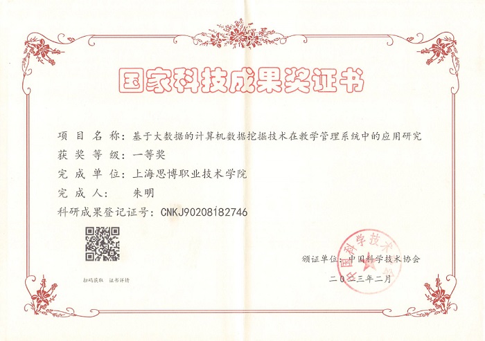 近日,在中国科学技术协会主办的国家科技成果奖评选中,我校信息办主任朱明的科研成果《基于大数据的计算机数据挖掘技术在教学管理系统中的应用研究》获得一等奖,是我校在科研获奖领域的一次新突破。