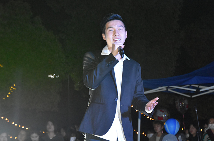 夜幕刚刚降下,草坪上早已人头攒动。由学生组合乐队带来的歌曲串烧《红玫瑰》《王妃》拉开了草坪音乐会序幕,点燃了现场所有师生的热情。音乐会分为“春之序曲”“爱有回响”“乐启未来”三个篇章,《爱很简单》《路过人间》《爸爸妈妈》《飞云之下》……“歌唱家”们将一首首悦耳动听的歌声呈现给在场的观众,表达了对祖国的热爱、对梦想的追求、对生活的乐观和对自由的向往,展现了思博青年的张扬与活力。神秘嘉宾工商外黄正教授热情地为同学们献上一首歌曲《星》,收获一片掌声。
