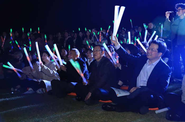 整场音乐会持续近2个小时,师生席地而坐,气氛热烈、高潮不断,大家挥舞着荧光棒和手机闪光灯随着旋律摇摆,听到熟悉的歌曲,台下同学们也跟着一起放声歌唱,现场化作星光的海洋,欢乐的能量场。最后,“草坪音乐会”在快乐的氛围和同学们的恋恋不舍中圆满落幕。