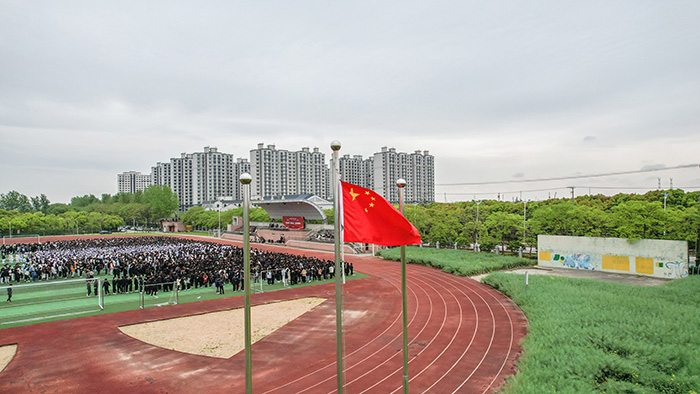 升旗仪式在党委副书记张辉的主持下拉开帷幕。伴随雄壮的义勇军进行曲,在英姿飒爽的护旗队员护卫下,五星红旗在校园上空缓缓升起。师生们整齐列队,面向国旗肃立致敬,高唱国歌,专注的眼神,认真的姿态,每个人内心都怀着对祖国无比的热爱。