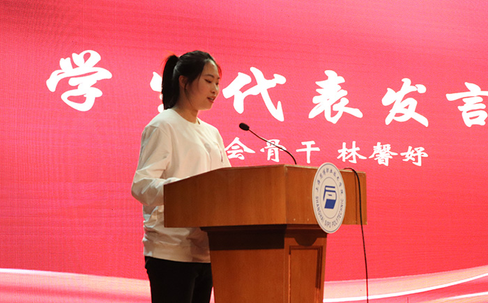 学生骨干林馨妤带来主题为《立志担当使命,争当奔涌后浪》的报告,她分享自己进入大学后设立的三个阶段目标,青春不息,奋斗不止。担当使命,争当后浪!