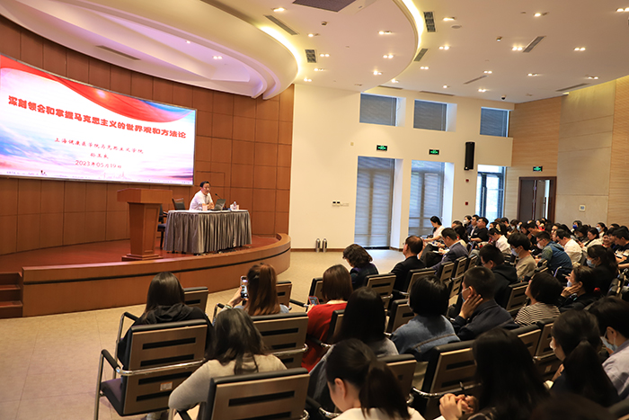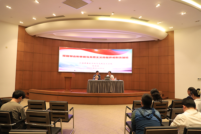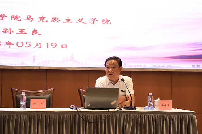 在学校主题教育持续深入开展期间,5月19日,学校主题教育读书班举行了学习贯彻习近平新时代中国特色社会主义思想专家报告会,邀请市教卫工作党委系统学习贯彻党的二十大精神专家宣讲团成员、上海健康医学院马克思主义学院院长孙玉良教授来校作专题报告,进一步引导广大党员干部、教师深刻领会和掌握习近平新时代中国特色社会主义思想的世界观和方法论,坚持好、运用好贯穿其中的立场观点方法,用党的创新理论武装头脑,推动工作。校党委理论学习中心组成员、各党总支、直属支部书记、思政教师、全体党员同志参加学习,学习会由党委书记万峰主持。