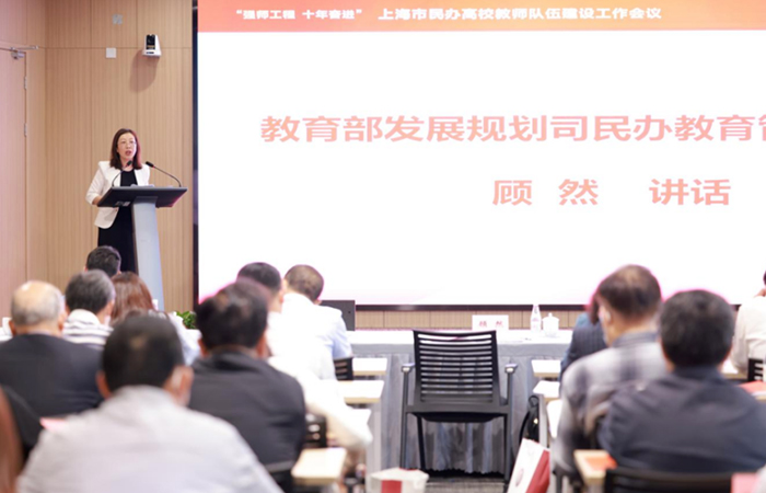 教育部发展规划司民办教育管理处处长顾然充分肯定了上海民办高校教师队伍建设的成果,全面分析了民办教育改革发展的形势,希望广大民办高校教师要牢记习近平总书记嘱托,一要坚定理想信念,坚守为党育人、为国育才的初心使命;二要为人师表,争做“四有”好老师;三要扎根教育实践,做教育改革的先行者;四要提升数字素养,做数字化转型的先锋。同时,希望上海继续发挥教育综合改革领头羊和先行者的作用,进一步总结凝练民办高校教师队伍建设的有益经验,不断探索民办教育各项改革举措,依托民办教育协同发展机制,以部市共建引领示范民办教育发展,为实现教育现代化、建设教育强国贡献力量。