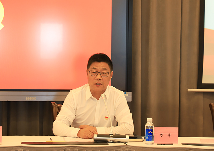 万峰书记致辞,他祝贺在座毕业生党员光荣入党,顺利毕业。他希望同学们要深刻认清我们正处于第二个百年奋斗目标的新征程和当今世界正经历百年未有之大变局、我国发展面临的国内外环境发生深刻复杂变化的历史方位。要求毕业生党员努力做一个初心不变、永续血脉的党的忠实传人,做一个脚踏实地、奋勇拼搏的堪当大任的人,做一个勇于挑战、勇于创新的时代新人。在今后的人生道路中时刻牢记党员身份,发挥党员先锋模范作用,在青春的赛道上奋力奔跑,为强国建设、民族复兴贡献青春力量。