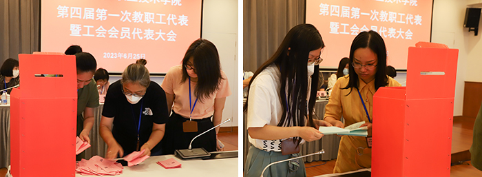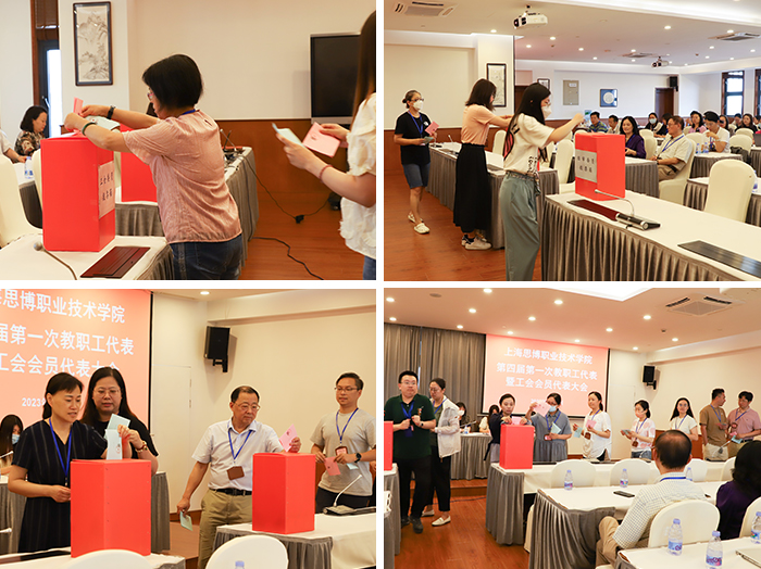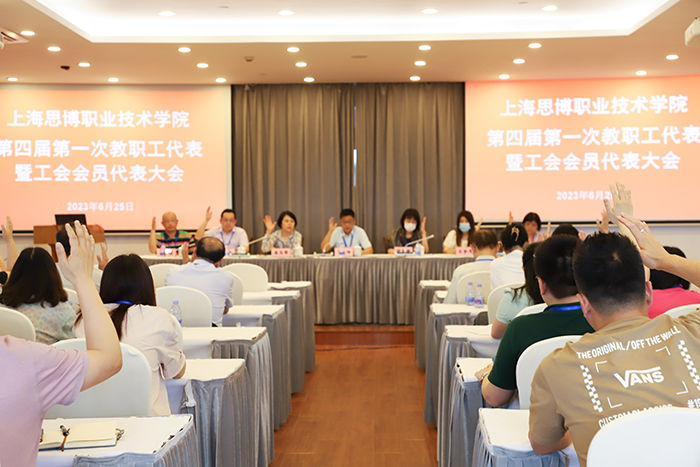 大会在庄严的国歌声中拉开帷幕。通过举手表决,大会审议通过《上海思博职业技术学院第四届第一次双代会主席团名单》、《上海思博职业技术学院第四届第一次双代会选举办法》、《上海思博职业技术学院第四届第一次双代会监票人、计票人、唱票人名单》。代表们用无记名投票方式选举产生了第四届工会委员会委员和经费审查委员会委员。