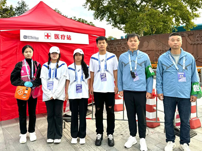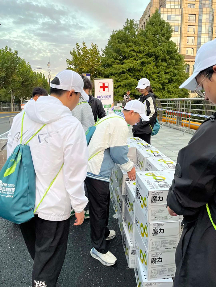 凌晨3:00,志愿者们已经整装待发,前往上海10公里精英赛的场地进行赛前准备。到达比赛现场后,同学们按照事先确定好的分工迅速投入到各自岗位中。他们分布在起终点、全程各补给站、检查岗、医疗站等赛事沿线岗位上,为跑友们提供赛场赛道指引、饮水食品补给等服务。每位同学都在各自岗位上一丝不苟、热情真诚地默默服务着。