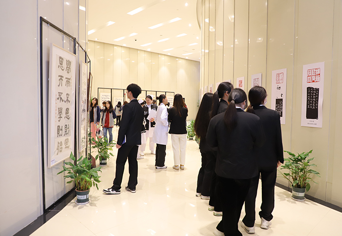最后,他宣布“习近平用典金句书法篆刻展”正式开幕。会后,与会领导、嘉宾和师生一同参观了习近平用典金句书法篆刻展。