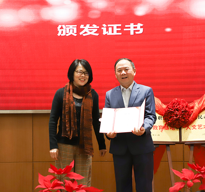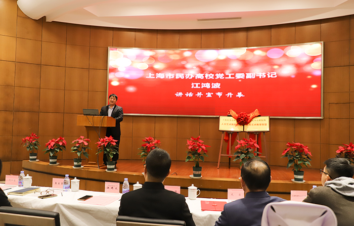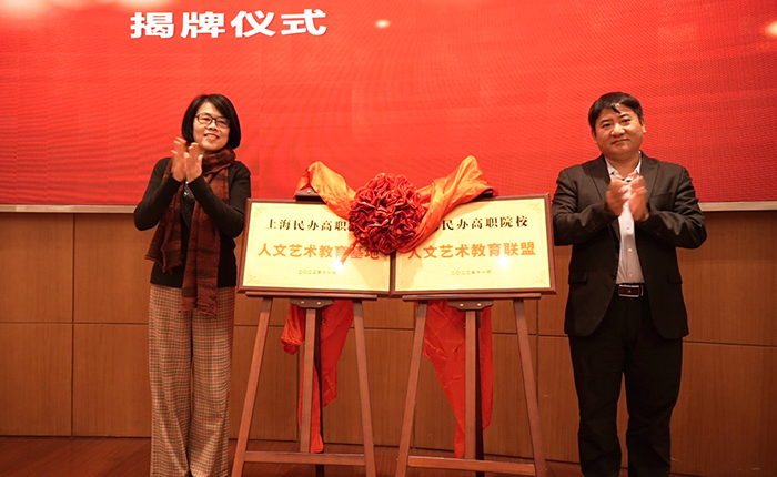 会上,上海市民办高校党工委副书记江鸿波、上海思博职业技术学院校长皋玉蒂共同为“上海民办高职院校人文艺术教育基地、上海民办高职院校人文艺术教育联盟”揭牌。随后,皋玉蒂校长为上海民办高职院校人文艺术教育基地特聘专家代表、上海音乐学院研究员史寅颁发聘书。