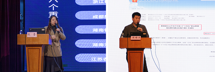 智慧树网金课咨询师饶蕾和北京蓝墨上海区负责人侯锡东依次分享了基于知识图谱的新型态课程教学改革与创新以及数字教材智能一体化建设的经验和案例。