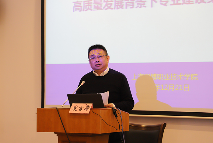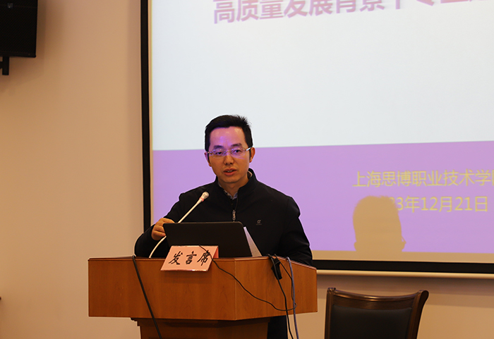 12月21日下午,我校举行了第一期高质量发展背景下专业建设案例汇报会,会议邀请了上海市教委职教处副处长马骏、上海工艺美术职业学院党委书记许涛、上海电子信息职业技术学院院长赵坚等领导专家到校指导。全体校领导,各院系(部门)助理及以上中层干部、教研室主任、骨干教师共150余人参会学习。整场会议分为专家报告、案例汇报、专家点评三个环节,由校长皋玉蒂主持。