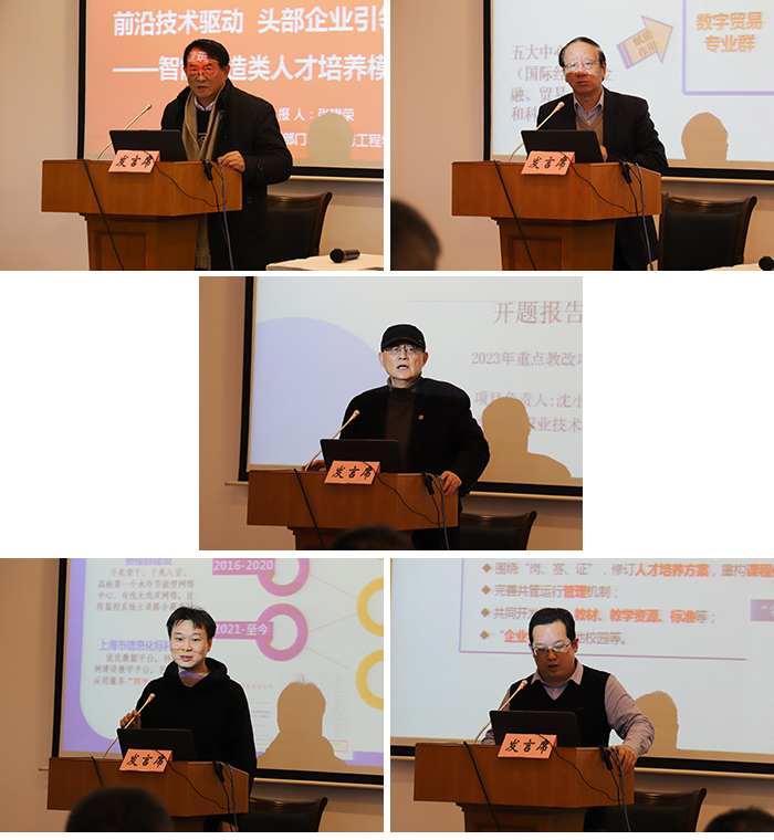案例汇报环节,建工学院执行院长张建荣、国商学院院长姚大伟、护理学院院长沈小平、信息办主任朱明、建工学院副院长汪晨武分别以《前沿技术驱动 头部企业引领 基地建设先行的人才培养模式持续改革实践》《面向丝路电商 数字贸易专业群创新实践》《对接行业需求 培养高素质多技能新时期高职护理人才的创新与实践》《加强信息化标杆校建设赋能学校高质量发展》《产教融合创新育人 校企共建建筑产业现场工程师培养基地建设》为题,分享了教育教学改革重点项目案例及新时期下教育教学改革的项目合作案例。