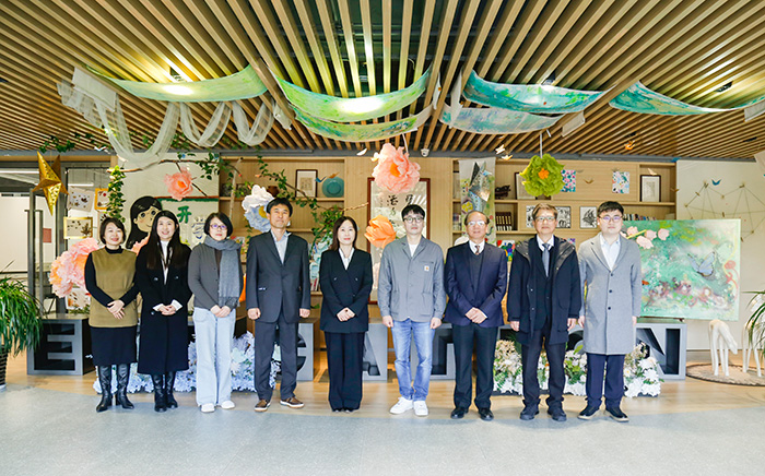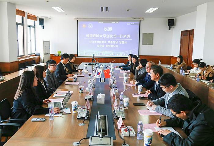 3月19日,韩国寿城大学副校长金建佑、国际交流院实务组长孙镇熙、学前教育学教授兼教育核心中心长金兌璟一行访问我校。学校副校长姚大伟,国际交流处处长江国滨,人文与教育学院名誉院长皋玉蒂、副院长吕梦思,上海工商外国语职业学院新媒体与文法学院副院长刘明辉、东方语言文化学院副院长、韩语系主任王璐、国际交流处主管唐曦伦参加接待和会见。韩腾教育 CEO 肖小茶,韩腾教育海外项目总监王琳,韩腾教育项目总监李文俊陪同韩方来访。