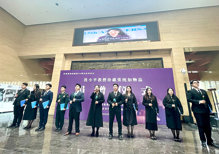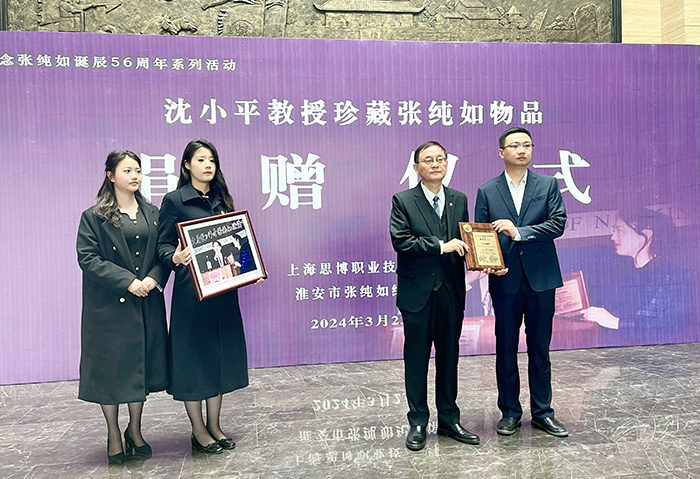 于是,沈小平副校长通过海外华人华侨、微信群、淮安市委市政府、淮安市侨联和张纯如的母亲张盈盈女士等多种途径联系到了纪念馆馆长何睿。终于,2024年3月23日,在淮安市各级领导的关心帮助下,张纯如纪念奖牌捐赠仪式在张纯如纪念馆隆重举行。捐赠仪式当日,在市区相关单位代表的见证下,在思博护理学院师生代表及当地师生代表的陪伴下,沈小平副校长怀着无比崇敬的心情,将张纯如纪念奖牌原件和二人颁奖合影照片亲手送至张纯如纪念馆馆长何睿手中。这一刻,他终于了却了心中那份长达26年的心愿。这枚纪念奖牌是26年前张纯如光辉美好时刻的见证,也将成为张纯如纪念馆140余件有关张纯如藏品中颇具分量的一件。