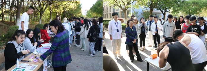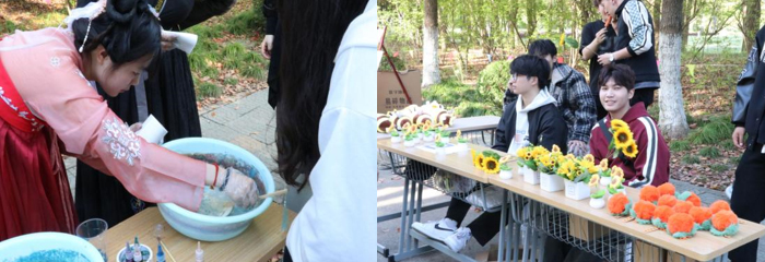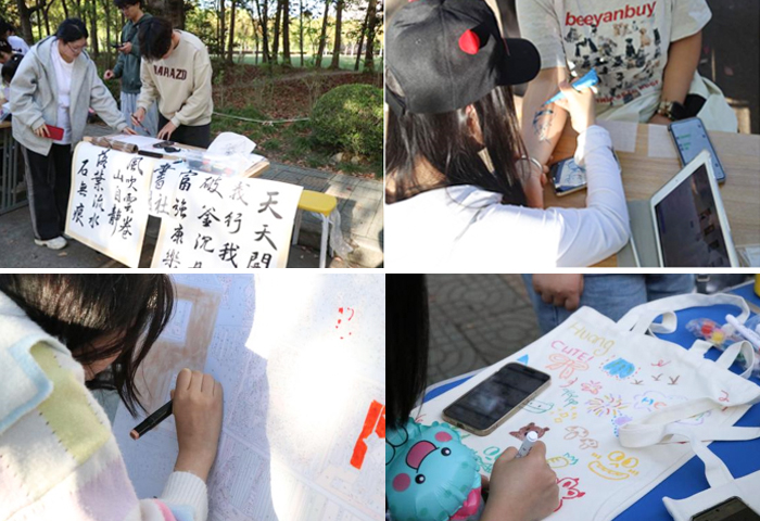 活动还精心设置了丰富多彩的文化体验项目,近30个摊位各具特色,汇聚了手工DIY、书法绘画、传统非遗文化漆扇等多个领域,涵盖了文化、生活与艺术创作的方方面面。同学们在这里尽情释放创意,感受传统文化与当代艺术融合带来的魅力。各摊位前人头攒动,络绎不绝,精彩纷呈的文化体验项目吸引了师生们纷纷驻足参与,共享这一文化盛宴。