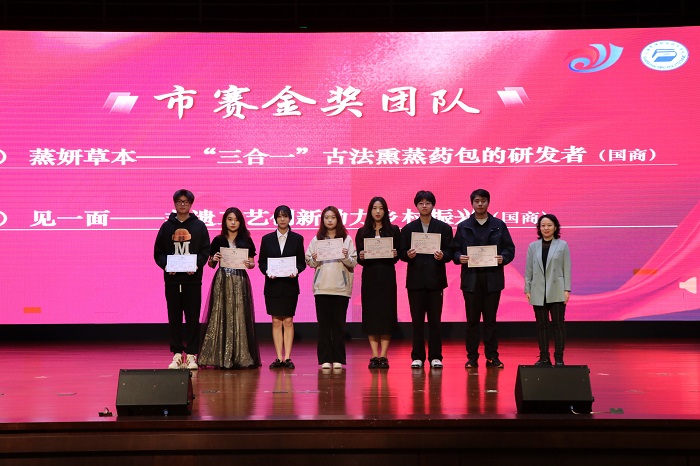 党委副书记张辉为市赛金奖(国赛铜奖)团队颁奖