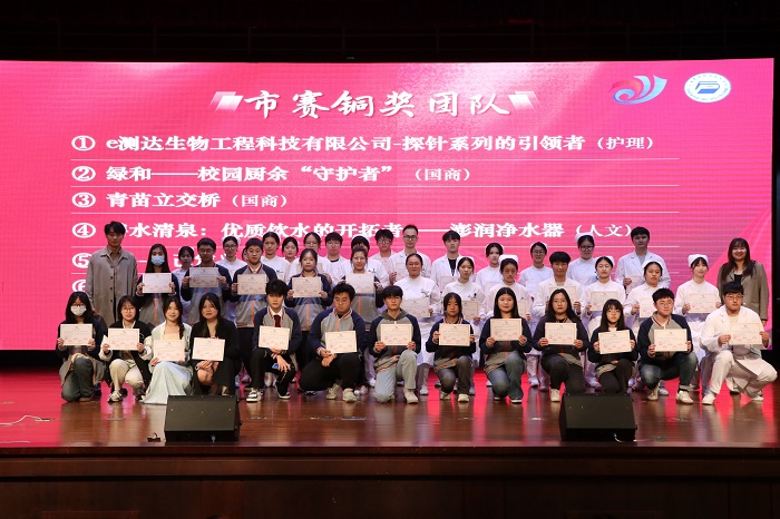 大会进行了隆重的表彰颁奖仪式,依次为获得市赛优胜奖、铜奖、金奖(国赛铜奖)的学生团队颁发获奖证书,为去年成功报名超200支队伍的二级学院颁发优秀组织奖,为获奖团队指导教师颁发优秀指导教师。2023年中国国际大学生创新大赛国赛铜奖团队代表张润喆同学上台分享了他的创新创业成长经历。