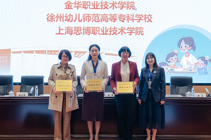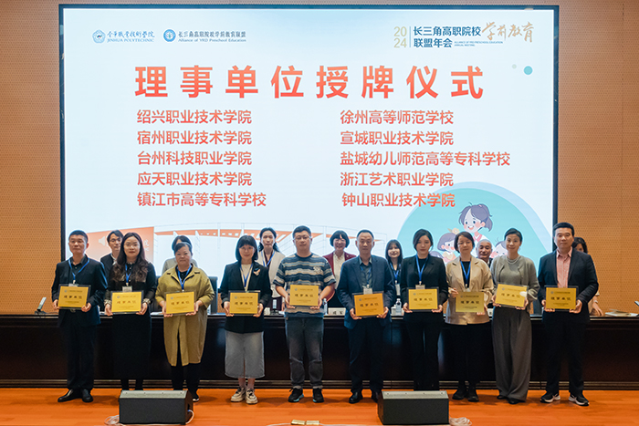 会议伊始,皋玉蒂院长作为轮值理事长单位代表,接受了理事长单位的授牌。黄正校长作为四所理事长单位代表,分别为其他理事单位授牌。此次授牌仪式也为进一步加强长三角区域职业院校学前教育专业合作和发展揭开了新篇章。