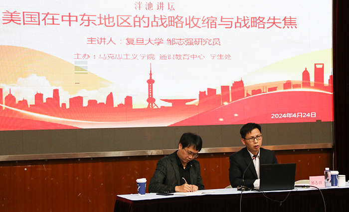为服务我校校园文化建设,狠抓落实习近平新时代中国特色社会主义思想的主题教育,近日,由马克思主义学院、通识教育中心和学生处联合策划的“思问讲坛”系列主题讲座第一讲在一号楼报告厅如期举行,复旦大学国际问题研究院邹志强研究员应邀来校作讲座。