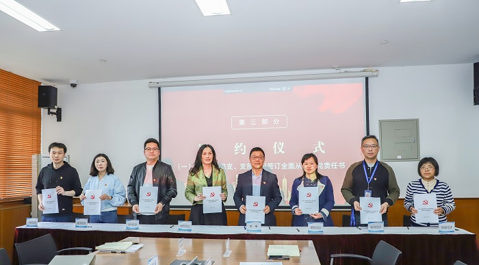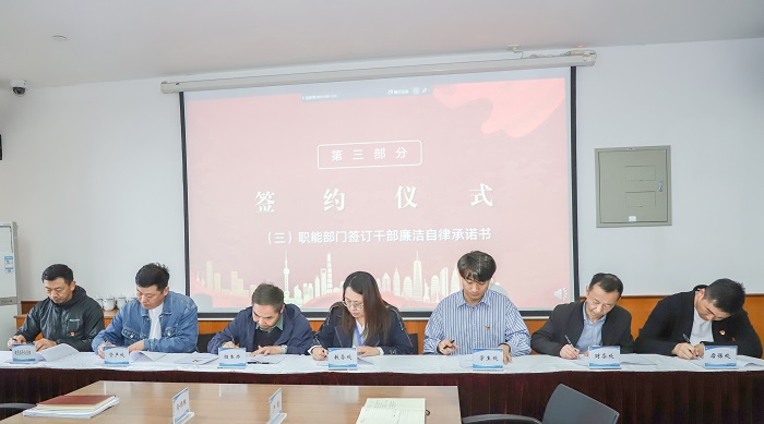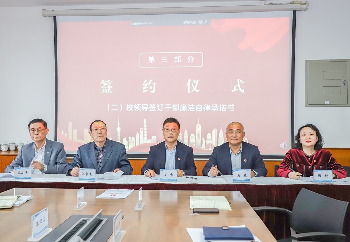 党风廉政签约仪式中,万峰书记代表党委和各总支、支部书记签订全面从严治党责任书,与会校领导、院系及职能部门负责人先后签订党风廉政建设承诺书。责任书和承诺书的签订,是共同维护党的纪律和规矩、推进全面从严治党的重要举措。