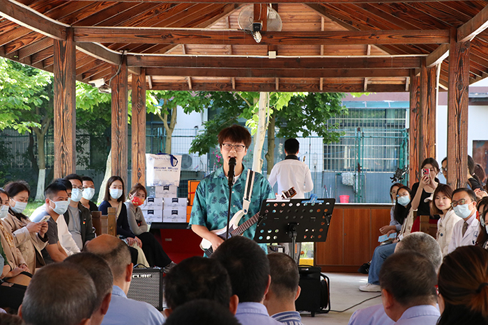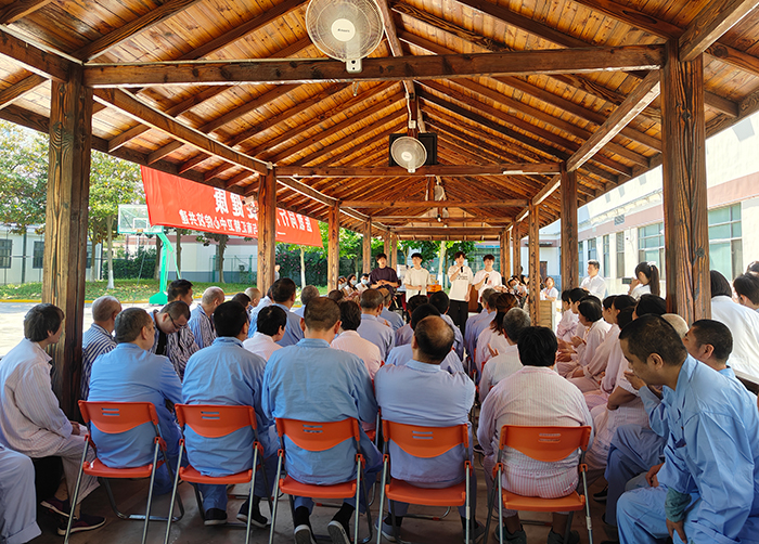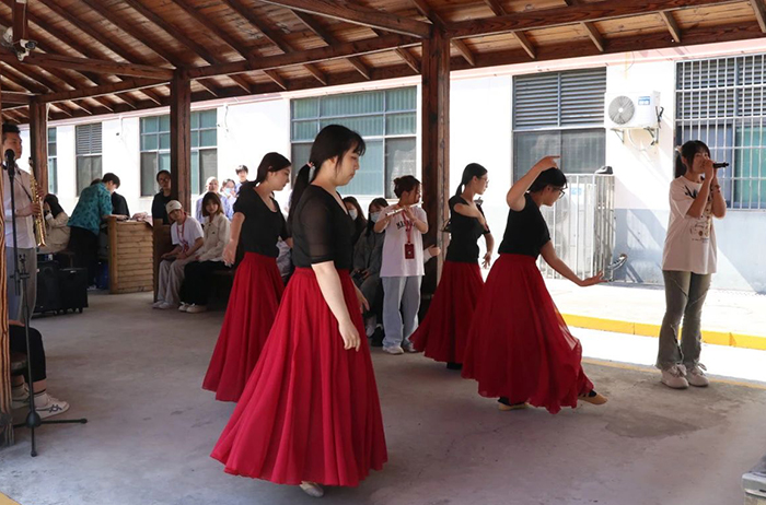 参观完毕后,学校“大学生艺术团”为康复期病人带来了轻松愉悦的表演,并进行了慰问物资交接仪式。
