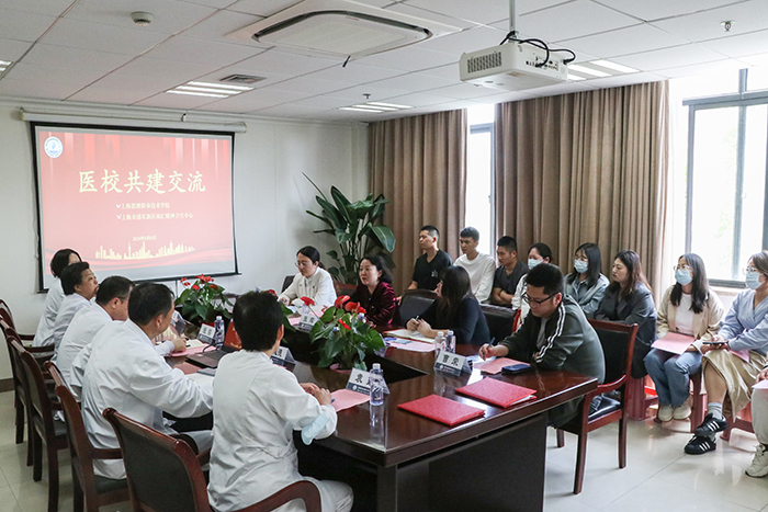 为守护学生生命健康,打造“医教结合”绿色通道, 5月8日,党委副书记张辉、团委书记眭灵钰带领各二级学院学管办主任、辅导员代表一行赴浦东新区南汇精神卫生中心参加“医教结合”合作研讨,实地走访参观,进行交流慰问。浦东新区南汇精神卫生中心院长钱铭、书记瞿佳,副院长胡建德等领导热情接待了我校师生一行。