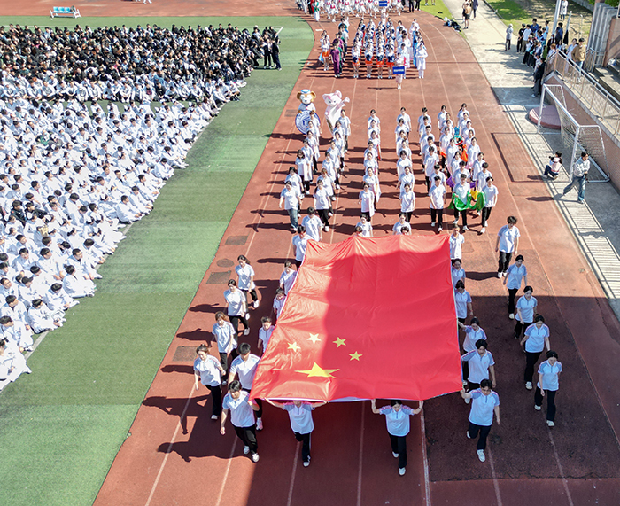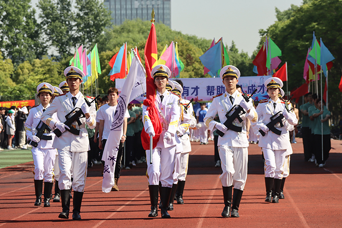 步履铿锵,旗帜飘扬,青春势不可挡。伴随着激昂的音乐,国旗、校旗、校训、彩旗方阵、院系运动员方阵依次入场,少年们整齐划一,雄姿昂扬,意气风发,步伐坚定地走过主席台,用激情嘹亮的口号和独具创意的表演展现出思博人敢闯敢拼的精神风貌和奋进新征程的使命担当。