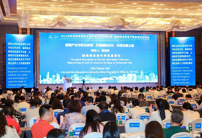 5月22日,2024年职业教育国际交流与合作论坛暨中国-越南职业教育产教联盟成立大会在广西南宁举办。副校长姚大伟教授及电子商务系副主任邹雨枫参会。