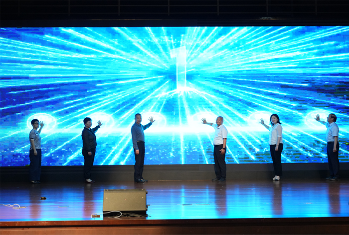 随后进入激动人心的校级决赛启动环节,王涛主任、王婉芳科长、姚栋华部长、丁炜科长、黄正校长、姚大伟副校长一起上台按下启动手印,共同点亮了本次校级决赛的启动仪式。