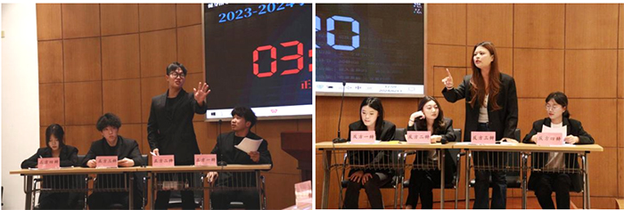 本次比赛共有六支院系队伍参赛,经过初赛、复赛的辩论比拼,最终,国商学院和健身指导与管理专业两支队伍晋级决赛,分别以正方和反方的身份围绕“大学生内卷利大于弊/弊大于利”的论题展开了激烈地辩论。正方认为在当今社会的形势下,处处存在竞争,不内卷只会被他人甩在身后。但反方认为内卷是无意义的时间消耗和精神内耗,是盲目从众的表现,不如根据自身制定计划提升自己。选手们各抒己见,侃侃而谈,针对对方辩手辩词的漏洞各个击破,现场气氛热烈,智慧火花燃爆全场,充分展示了辩手们的思辨魅力与个人风采。