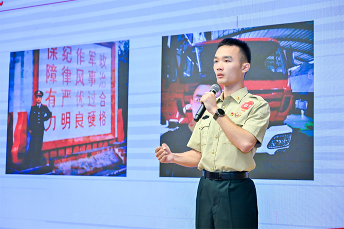 陶翰宇的演讲以《要让青春不一样——“传承与梦想”初心不换代》为题,讲述他及祖父辈三代人的从军经历和使命责任。2021年9月,他从我校应征入伍,服役于火箭军部队。通过专长,受到部队领导的表扬和鼓励,获得了单位唯一的“四有”优秀士兵。2023年9月退役复学到计算机应用技术专业,参加了上海第六届进口博览会并担任小叶子体验官,与央视新闻合作完成了学校风采展示与相关采访视频的制作。未来,他励志成为一名优秀的视频记者,用镜头记录时代变迁,用影像传递社会正能量,用行动抒写不一样的青春。