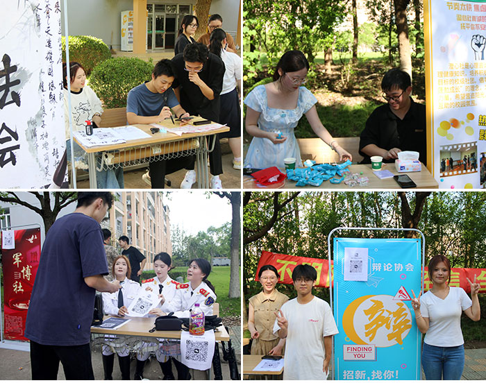 活动的另一侧,社团招新现场热闹非凡。来自全校的20个社团纷纷亮出各自的“杀手锏”,热情洋溢地向初来乍到的新生们推介社团文化,吸引了众多新生驻足了解。大家在这里找到了志同道合的朋友,也为自己即将展开的大学生活铺设了五彩斑斓的画卷,开启无限可能的新篇章。