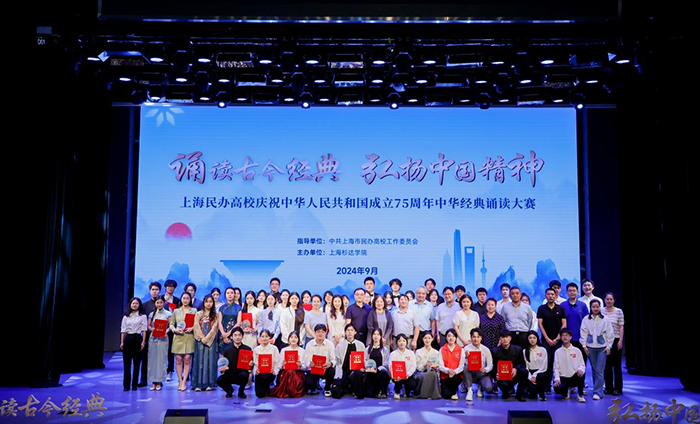 为深入学习贯彻党的二十大精神,热烈庆祝中华人民共和国成立75 周年,团结凝聚广大青年学子听党话、跟党走。在中共上海市民办高校工作委员会指导下,9月25日“诵读古今经典,弘扬中国精神”上海市民办高校中华经典诵读大赛在上海杉达学院顺利举行,我校学子凭借出色表现获得了三等奖和优秀组织奖的好成绩。