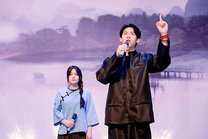 大赛汇聚了众多高校诵读爱好者,经过激烈选拔,我校作品《寻李白》脱颖而出,成功晋级决赛。经过长时间备赛,思博学子们在比赛中展现出深厚的诗词文化底蕴与卓越的语言艺术风采,他们以声传情、以情动人,用自己的声音和理解,赋予了经典诗词新的生命和意义,每一句诗词的吟诵都饱含深情,展现了中华诗词的无限魅力,为传承与弘扬中华诗词文化添上了浓墨重彩的一笔。