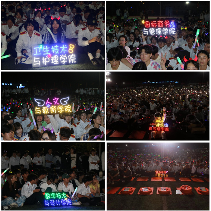 9月26日,2024级“同心筑梦,军民同辉”军民联欢晚会暨迎新晚会在学校体育场上绚丽开幕。军训大队队长谢军教官、副队长韦立松教官、校长黄正、副校长沈小平、护理学院执行院长叶萌及各二级学院分管领导、部队教官、学管办主任、辅导员与2024级新生相聚操场,一同欣赏了这场融合歌声与掌声、视觉与听觉双重享受的视觉盛宴。