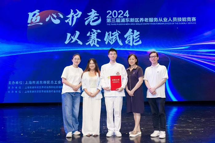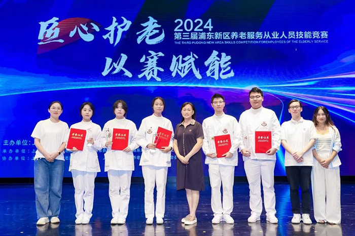 近日,浦东新区第三届养老服务从业人员技能竞赛颁奖仪式在浦东新区工人文化宫举行。我校护理学院五名23级智慧养老专业参赛学生在竞赛中表现突出,分别荣获一等奖1项、二等奖1项、三等奖3项。