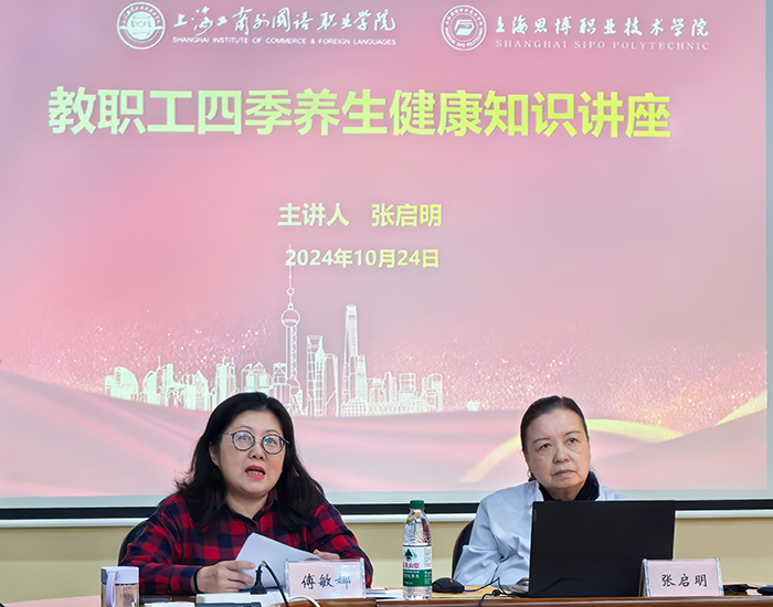 为进一步提高教职工的健康意识和自我保健能力,关心关爱教职工健康,提升大家的集体归属感和向心力,近日,学校和上海工商外国语职业学院两校工会联合举办教职工四季养生健康讲座。