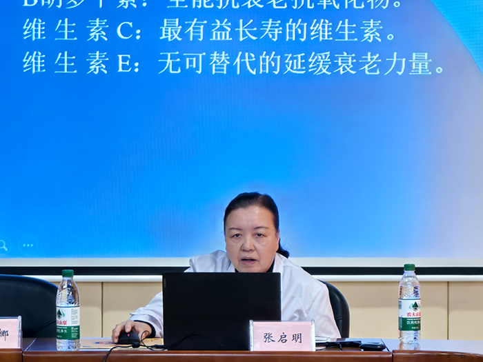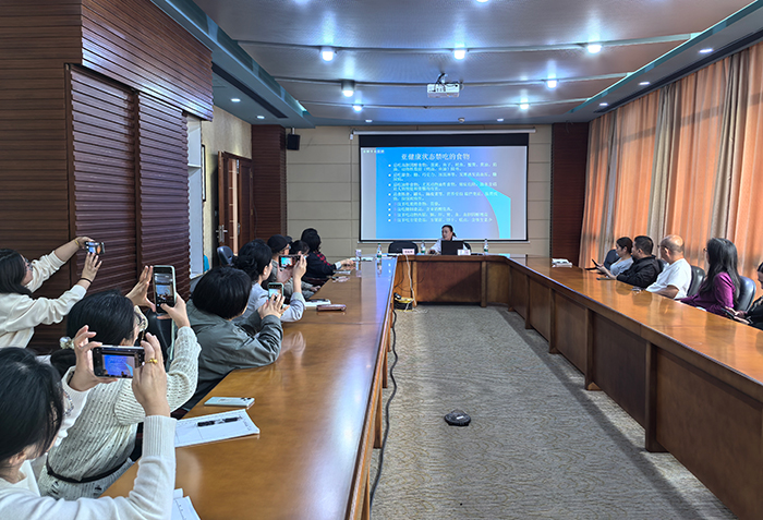 随后,讲座的特邀嘉宾美年大健康大客户医疗总监兼院长、副主任医师、高级营养师和心理咨询师张启明主任,以“四季养生”为题,为教职工们普及了预防和改变亚健康的知识和方法,并强调了从合理膳食、适量运动、心理平衡、戒烟限酒和定期体检等方面保持健康生活方式的重要性。会上,张主任不但分享了营养食谱,还带领大家学习如何通过简单的穴位按摩及动作,改善一些由于亚健康状态带来的不适,引导教职工做好自身健康的第一责任人。会后张主任还为部分教职工耐心解答了体检过程中遇到的问题。