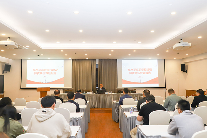 黄正校长作高水平高职学校建设师资队伍专题报告。报告从习近平总书记对广大教师的寄语引入,引领在场的干部教师进一步加深对教师职业的认识,增强职业幸福感、成就感和荣誉感,激励着大家在教育之路上坚定前行。同时,黄校长还深入解读了黄炎培的职业教育思想以及黄大年教学团队标准,以教育家精神为指引,将总书记的嘱托、前辈的思想以及优秀楷模的标准有机融合,为学校高水平高职学校建设中的师资队伍发展指明了方向。