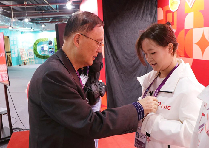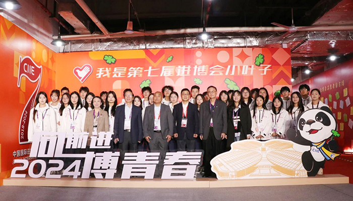 11月7日,校长黄正,党委书记万峰,党委副书记、副校长姚大伟,副校长沈小平,党委副书记、副校长、纪委书记张辉一行来到进博会现场,亲切关怀正在岗位辛勤工作的思博“小叶子”们,校团委书记眭灵钰陪同慰问。