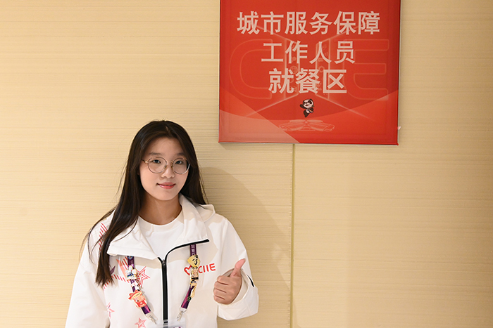 今年思博“小叶子”们在进博会现场主要担任餐饮食品供应保障、接驳车站点秩序维护等岗位,志愿者们忙碌的身影穿梭在各个场馆内,他们秉承“奉献、友爱、互助、进步”的志愿服务精神,怀志笃行,脚步铿锵,用心用情用力践行着“向前进 博青春”的承诺。