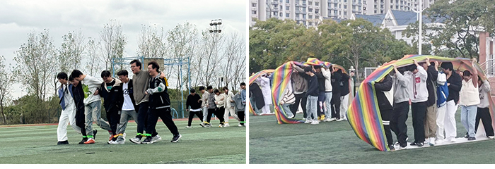 此外,11月19日下午,心理中心还组织了一场朋辈互助素质拓展活动,通过“十人九足”“心灵手巧”“无敌风火轮”“袋鼠跳”等趣味游戏,增强了心理委员们的团队协作能力和互助技能。