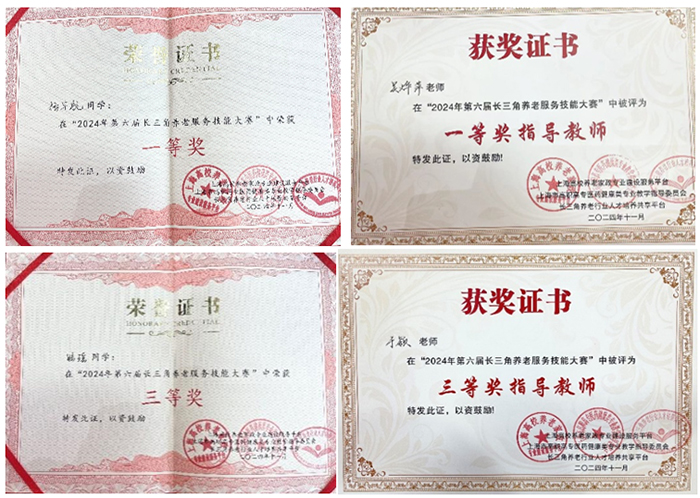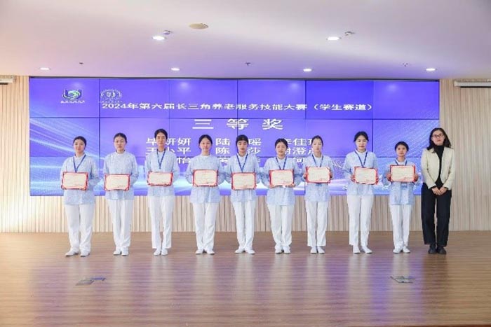 11月20日至23日,由上海市教委指导的“2024年第六届长三角养老服务技能大赛”在上海城建职业学院圆满落下帷幕。凭借出色的专业技能和卓越的综合素质,护理学院护理专业2207班杨宇航同学荣获了一等奖,护理专业2203班陆瑶同学荣获三等奖,吴烨萍和于颖老师荣获优秀指导教师的称号。