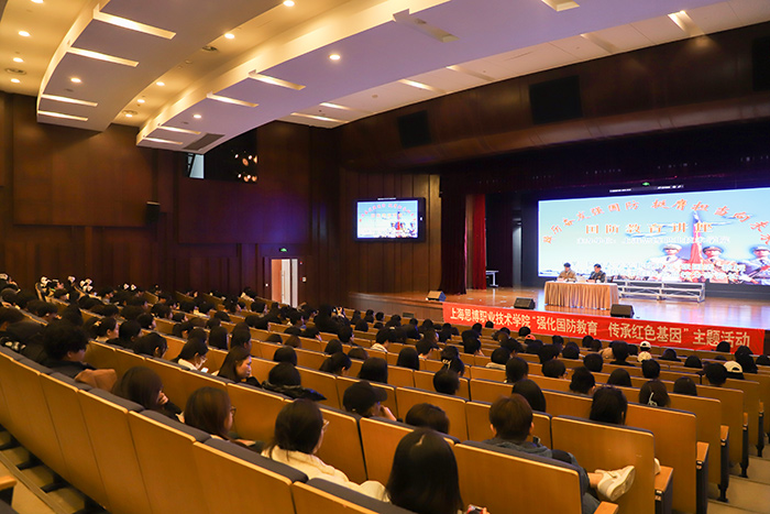 11月28日下午,我校在综合楼大礼堂举办“强化国防教育 传承红色基因”国防教育专题讲座,由现任上海市学校国防教育协会高校分会会长张国清教授主讲。党委副书记、副校长张辉热情接待了张教授,对其到来表示欢迎,各二级学院学生代表和军事兴趣类社团学生代表500余人参加讲座。