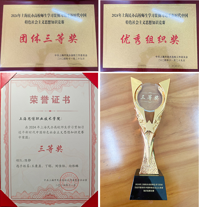 凝心铸魂跟党走,以赛促学共奋进。11月29日,由中共上海市民办高校委员会主办的2024年上海市民办高校师生学习贯彻习近平新时代中国特色社会主义思想知识竞赛决赛在上海工商职业技术学院落下帷幕。经过激烈角逐,我校师生代表队最终获得团体三等奖,学校荣获优秀组织奖。