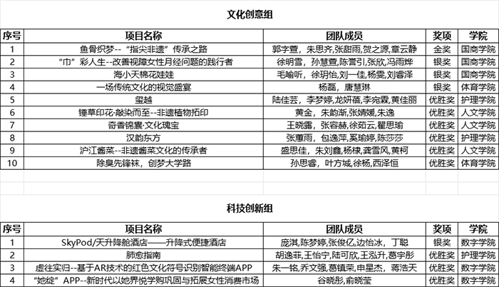 第二届上海市职业院校学生创新创意大赛获奖名单