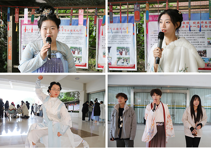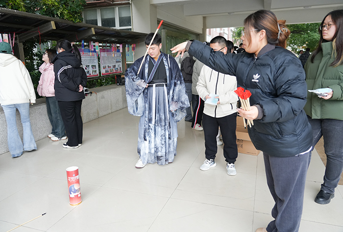 以木为箭远程投壶、以漆为笔绘制团扇、悬挂彩色灯谜卡片、各种朝代服饰卡片、猜对即可获得精美小礼品……活动以新的互动形式承载中华传统文化,鼓励同学们的积极参与,让文化与趣味并存。