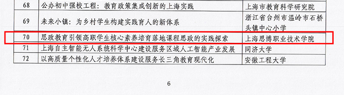 近日,教育部征集评选的长三角教育现代化典型案例入选结果公布,我校推荐的案例《思政教育引领高职学生核心素养培育落地课程思政的实践探索》成功入选。