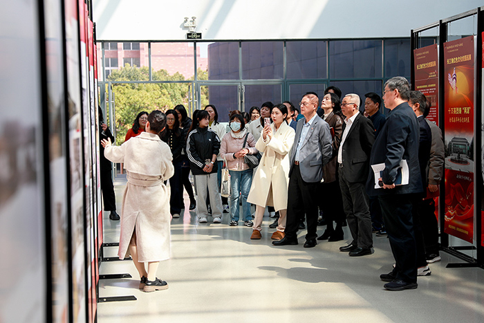本次展览邀请上海中侨职业技术大学马克思主义学院思政教师端木潘婷来校讲解。与会人员一行首先参观《追寻先贤步伐 传承爱国之光——爱国企业家张謇事迹展》。张謇是中国近代历史上熠熠生辉的人物,身兼实业家、教育家、政治家、慈善家等多重身份,堪称中国棉纺织领域的开拓者。他在南通兴办了一系列影响深远的文化教育事业,为中国近代民族工业的兴起奠定了坚实基础,更为教育事业的发展奉献了毕生心血。在聆听讲解和观看图文展示中,两校参观人员深入了解了张謇先生波澜壮阔的一生。从他弃官从商的果敢抉择,到实业救国的艰辛探索;从创办学校培育人才的远见卓识,到投身慈善回馈社会的大爱情怀,参观人员纷纷对张謇先生表达了由衷的敬意,感慨于他为国家和民族所做出的贡献。