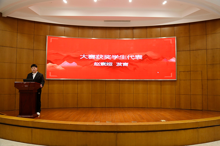 上海赛区第3名、本次比赛一等奖获奖者赵素娅同学分享了参赛的经验和收获。正在子北科技有限公司实习的金融2201班张博然同学,以上届比赛获奖者身份讲述了成为期货操盘手的感悟。他鼓励学弟学妹把握行业机遇,将专业知识转化为职业竞争力。