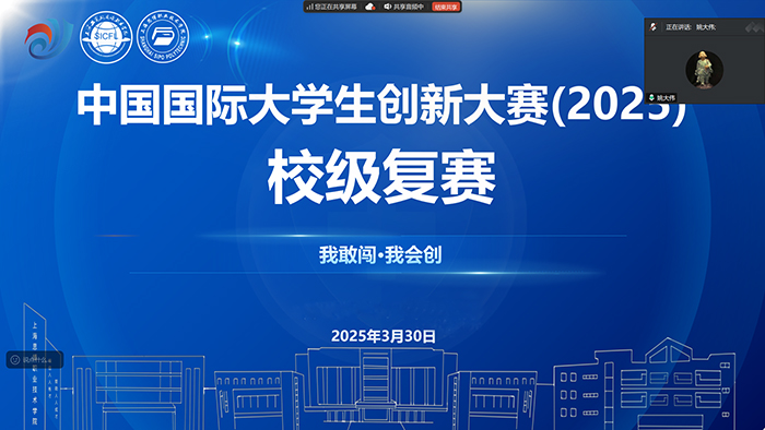 春潮涌动,创新激荡。在党的二十大“加快实施创新驱动发展战略”的号召下, 3月29日至30日,上海工商外国语职业学院、上海思博职业技术学院“中国国际大学生创新大赛(2025)校级复赛”在云端开展。我校校长黄正、副校长姚大伟,两校创新创业学院院长胡凤麟、副院长唐三三、双创团队的老师以及各二级学院参赛队伍和指导老师出席本次线上复赛。